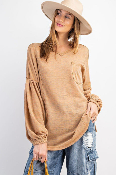 Bubble Slvs Multi Tone Light Hacci Sweater Top
