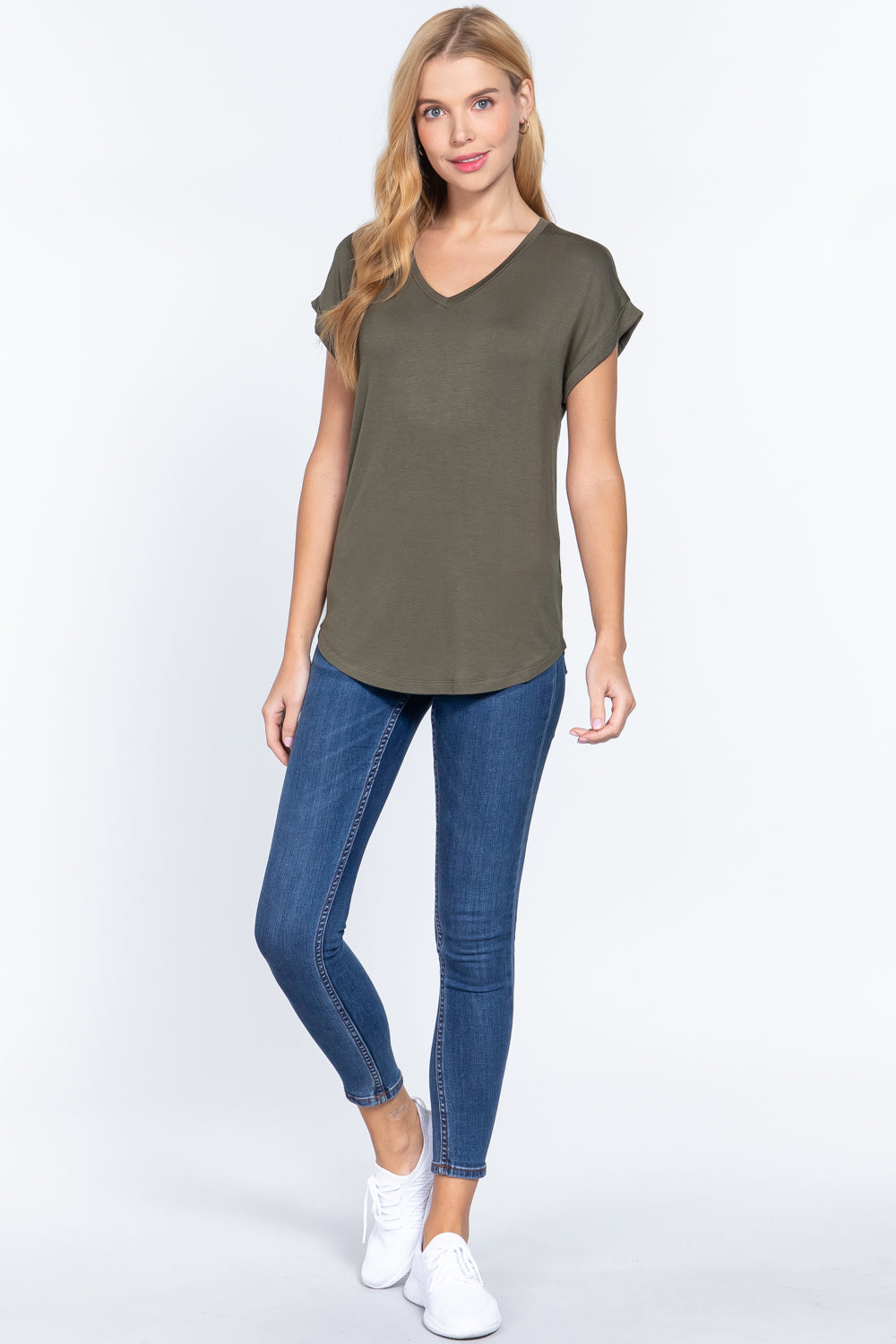 Imported S.M.L DOLMAN SLV V-NECK RAYON JERSEY TOP 95% Rayon 5% Spandex French Olive ACT