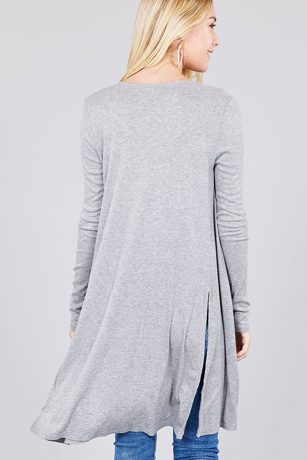 Imported S.M.L.1XL LONG SLEEVE OPEN FRONT SIDE SLIT TUNIC LENGTH RAYON SPANDEX RIB CARDIGAN 97% Rayon 3% Spandex Heather Grey ACT