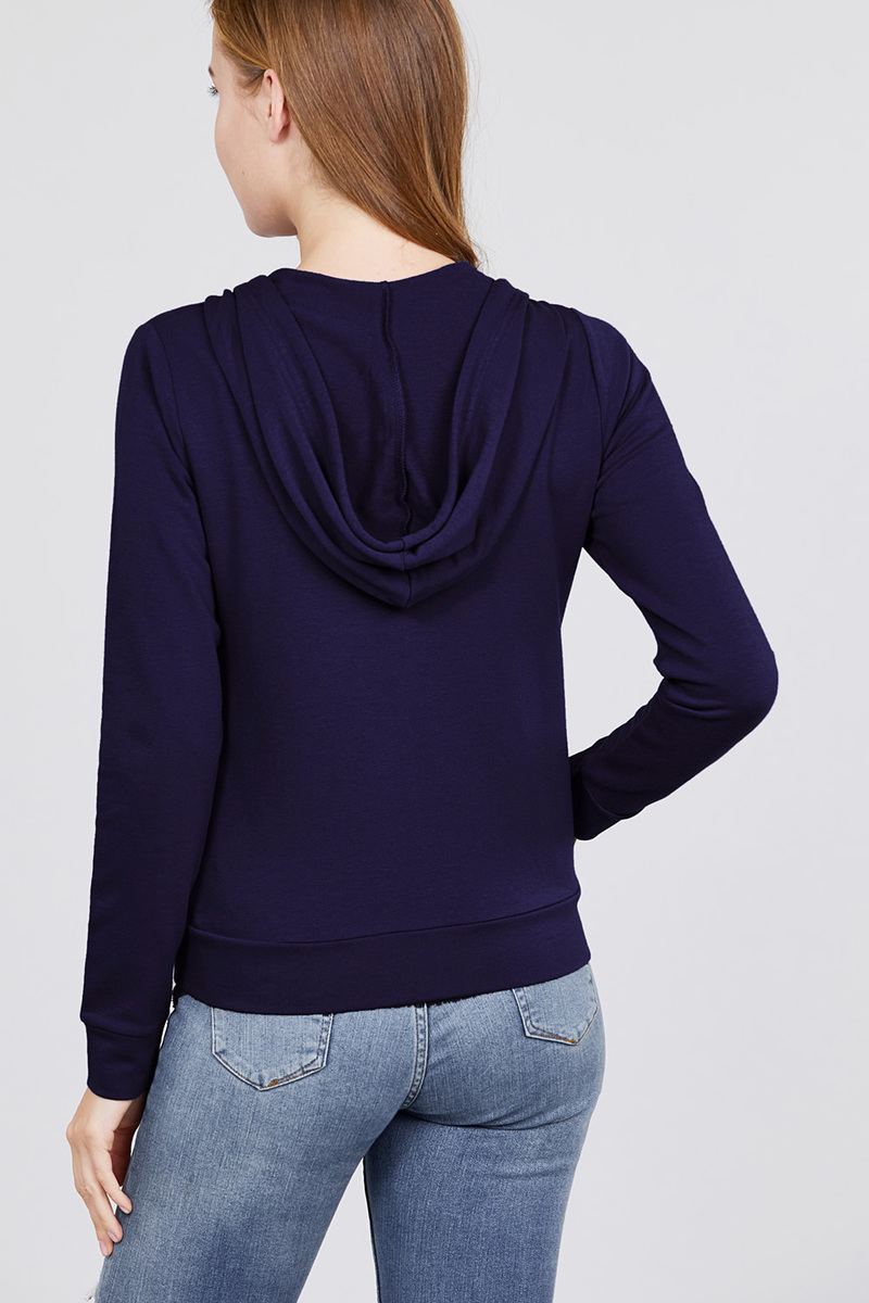 Imported S.M.L LONG SLEEVE ZIPPER FRENCH TERRY JACKET W/ KANGAROO POCKET 57% Cotton 38% Polyester 5% Spandex Navy ACT