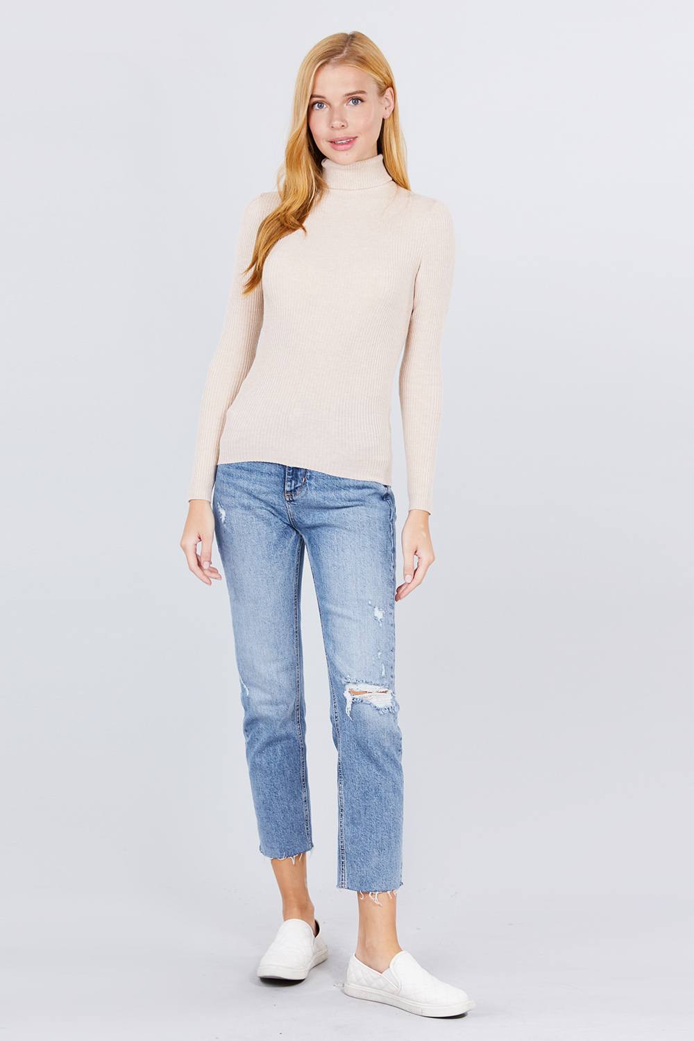 Imported S.M.L LONG SLEEVE TURTLE NECK FITTED VISCOSE RIB SWEATER TOP 50% Viscose 30% Polyester 20% Nylon Taupe ACT