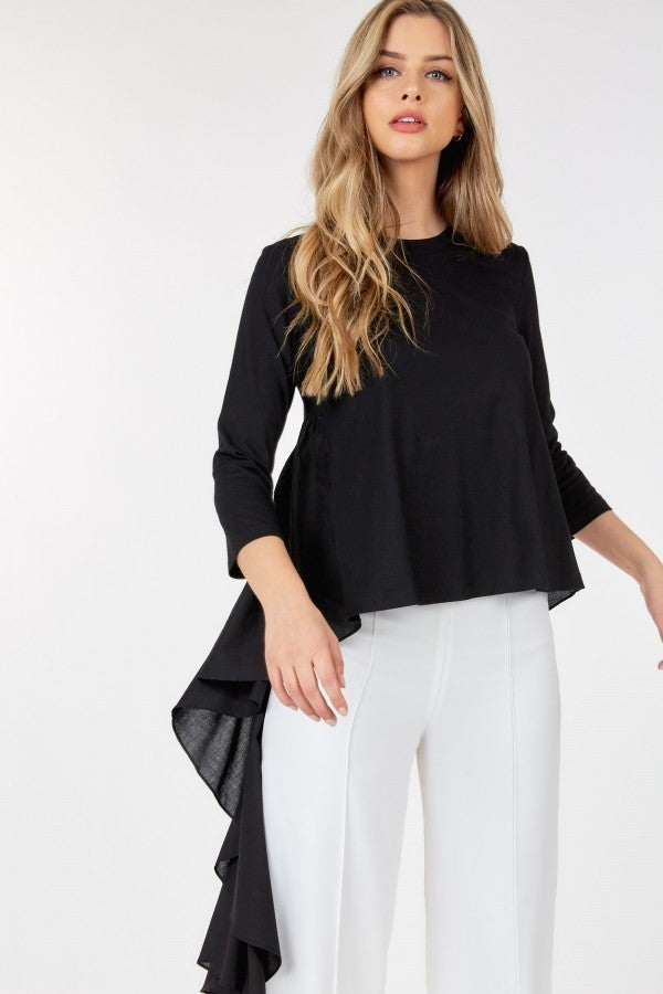 This contrast quarter sleeve blouse with a ruffle sleeve is a stylish and feminine option for anyone looking to add a touch of elegance to their wardrobe. The ruffle sleeve detail adds a playful and sophisticated element to the overall design of the shirt. Made from high quality fabric, this shirt offers both comfort and style. The ruffle sleeves create a soft and romantic look, making it perfect for both casual and dressier occasions. Whether you pair it with jeans for a chic everyday outfit or dress it up with a skirt for a formevent, this shirt with ruffle sleeves is a versatile and fashionable choice.