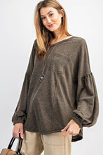 ImporetdS.M.L-V NECK-BUBBLE SLEEVE-LOOSEFIT-POCKET DETAIL75% Polyester 25% Rayon Ash EAS