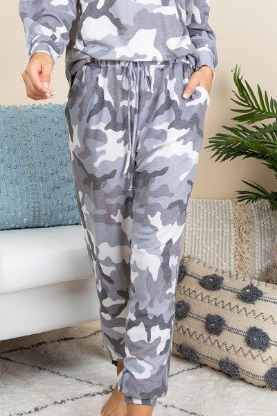 Camo Army Printed French Terry Casual Loungewear Joggers