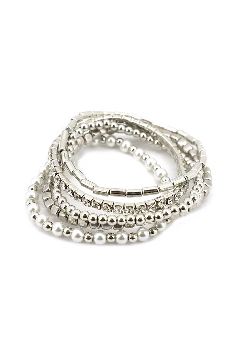 Imported FASHION METAL PEARL BEAD STRETCH MULTI BRACELET Rhodium. Gold FBJ