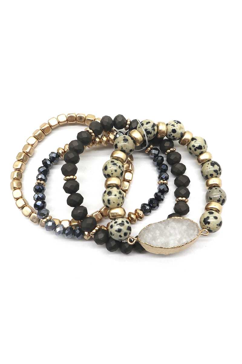 ImportedCRYSTAL METAL DRUZY STONE BEAD STRETCH BRACELET SETMulti.Black.Mint.NaturalFBJ