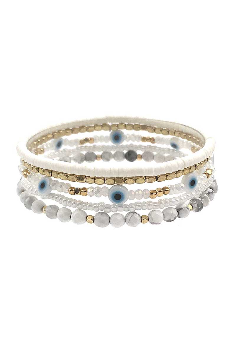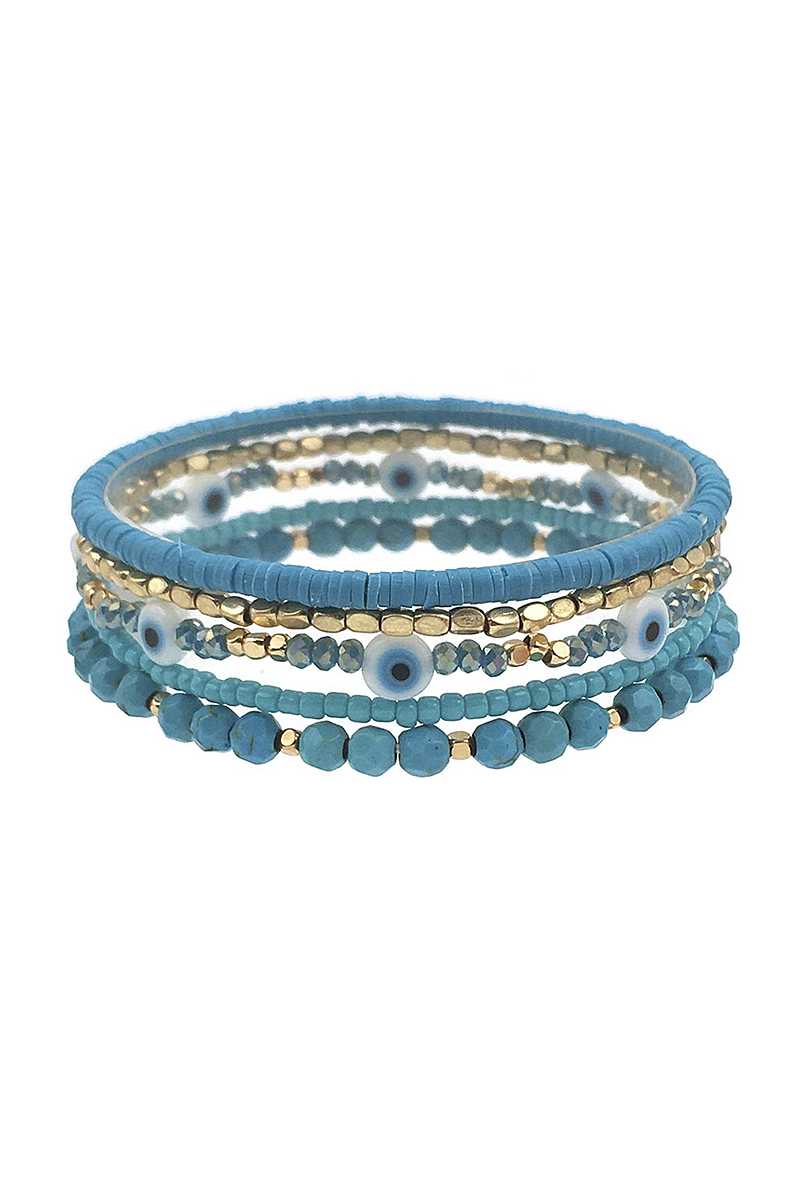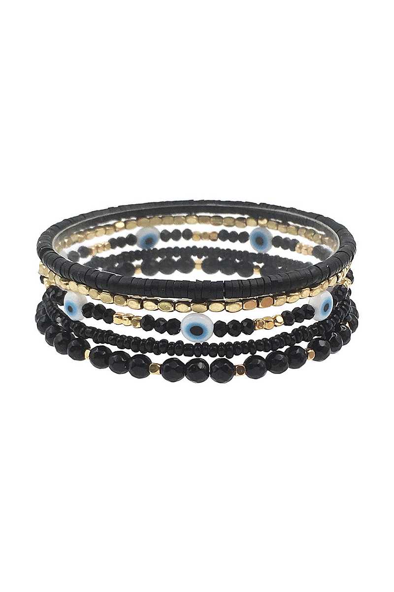 Imported MULTI LAYER METAL BEAD EYE BRACELET Black.White.Turquoise FBJ