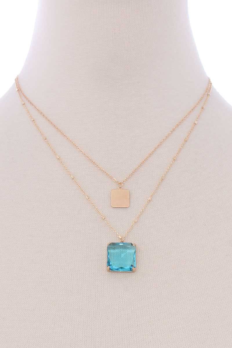 This stylish 2 Layered square pendant features a pink, brown, clear red, or turquoise stone. Perfect for casual or evening wear.