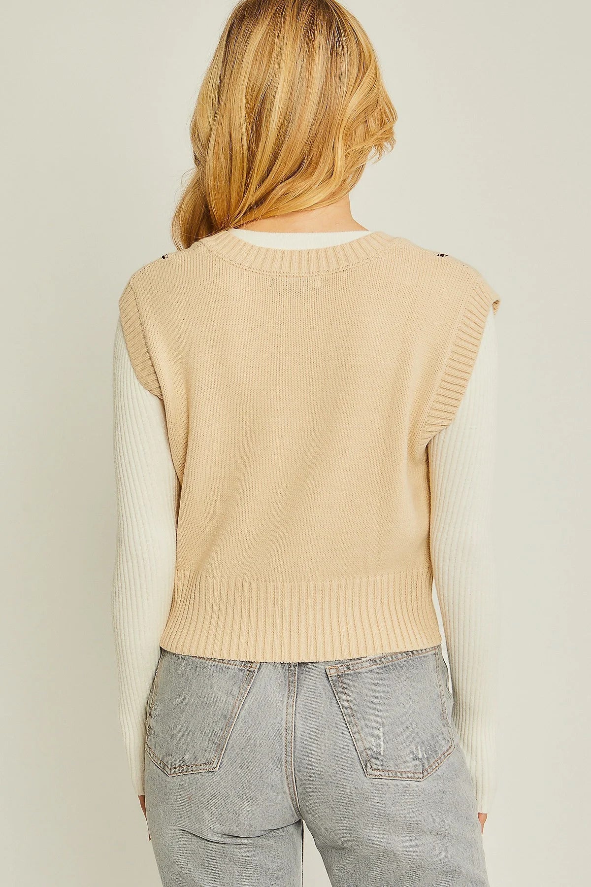 Imported S.M.L Argyle Print Sweater Vest 95% Polyester 5% Spandex Beige LOV